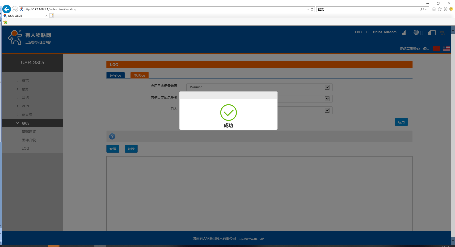 日志(Kernel、Application、VPN)支持即時(shí)查看、清空;如下圖: