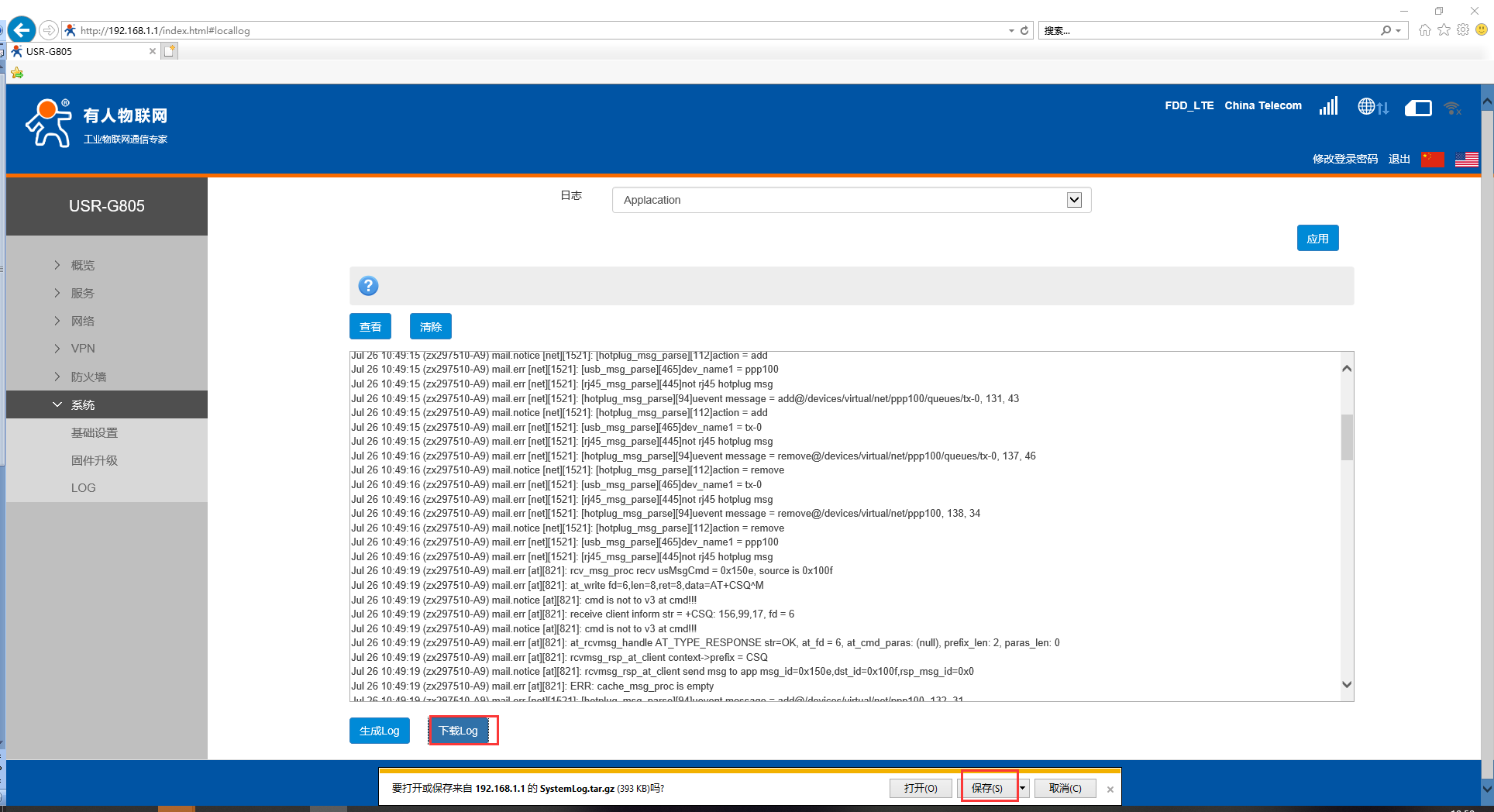 4、支持日志文件導(dǎo)出(先生成后導(dǎo)出)。如下圖: