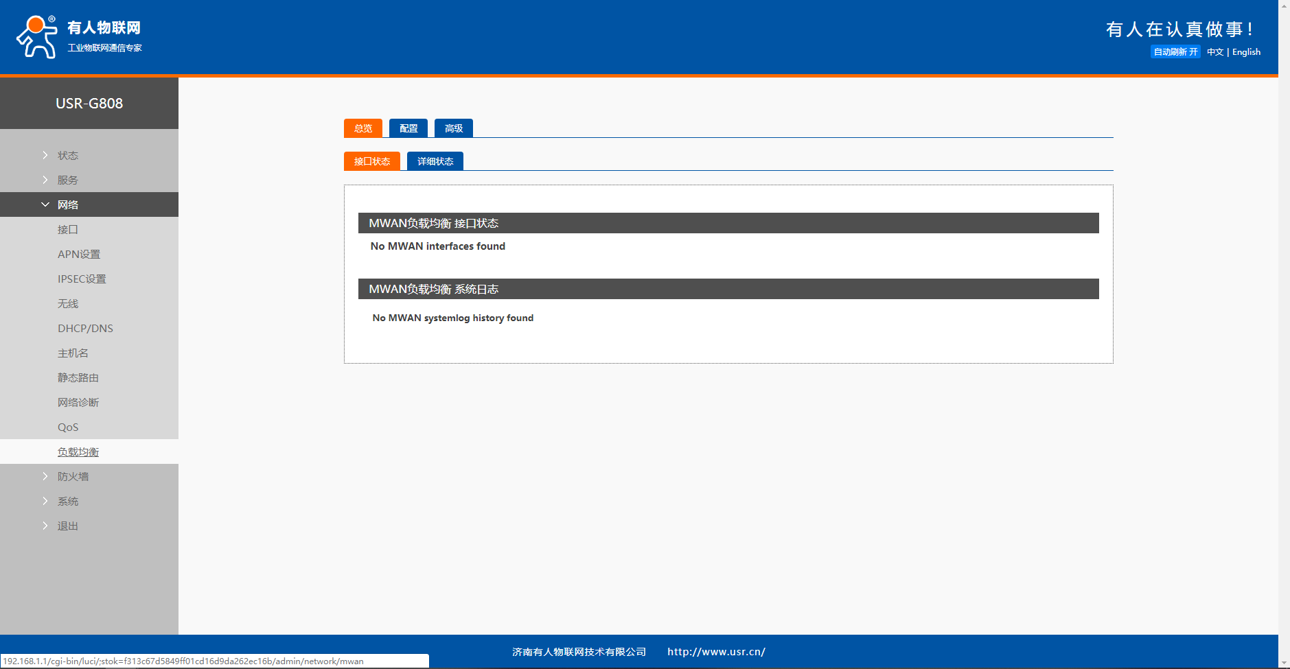 1、進入G808配置網(wǎng)頁后,點擊網(wǎng)絡----負載均衡界面,如下是未開啟負載均衡功能的界面顯示。