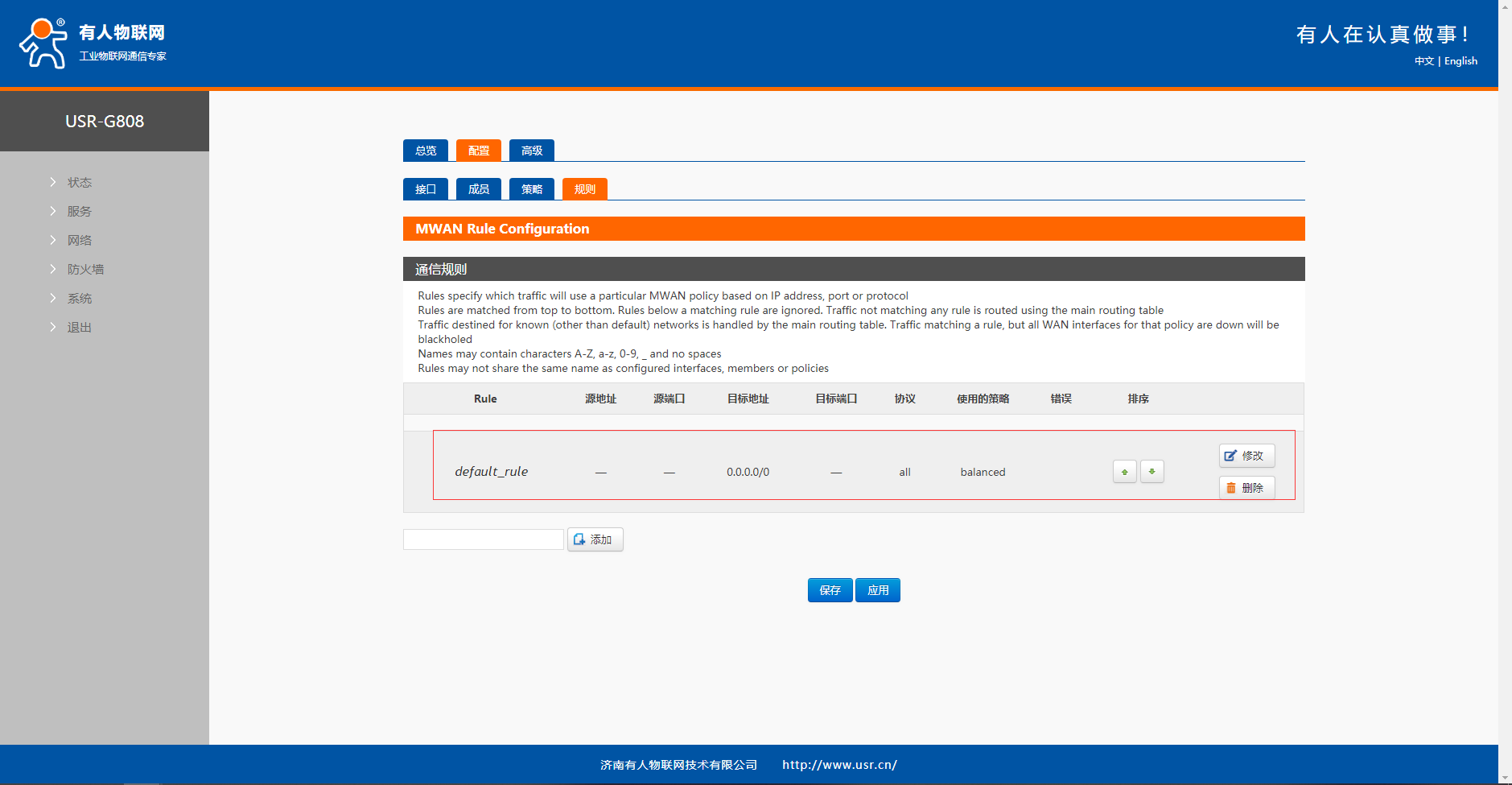 點擊配置----規(guī)則,添加規(guī)則(規(guī)則名稱可以自定義),這里設置default_rule。設置完成后點擊添加。