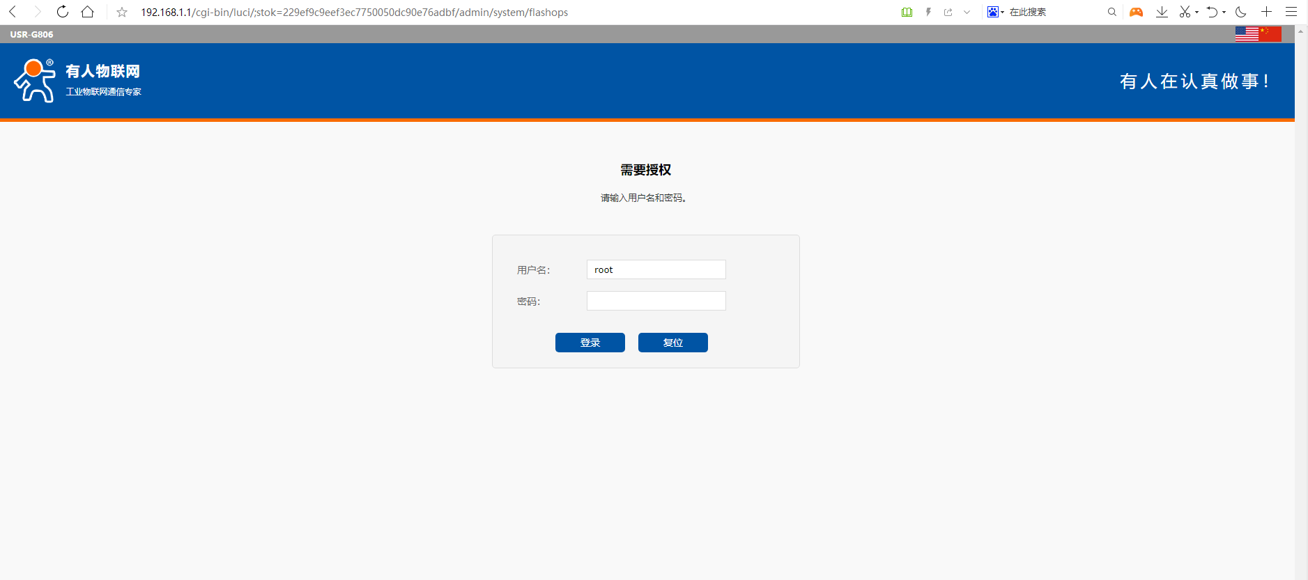如步驟2所示,PC獲取到IP192.168.1.1,IPV4 默認(rèn)網(wǎng)關(guān)192.168.1.1即工業(yè)路由器G806的LAN口IP。打開瀏覽器,在地址欄輸入192.168.1.1后回車,彈出登錄界面,填寫用戶名密碼(出廠默認(rèn)都是root)點(diǎn)擊確認(rèn),即可進(jìn)入配置網(wǎng)頁: