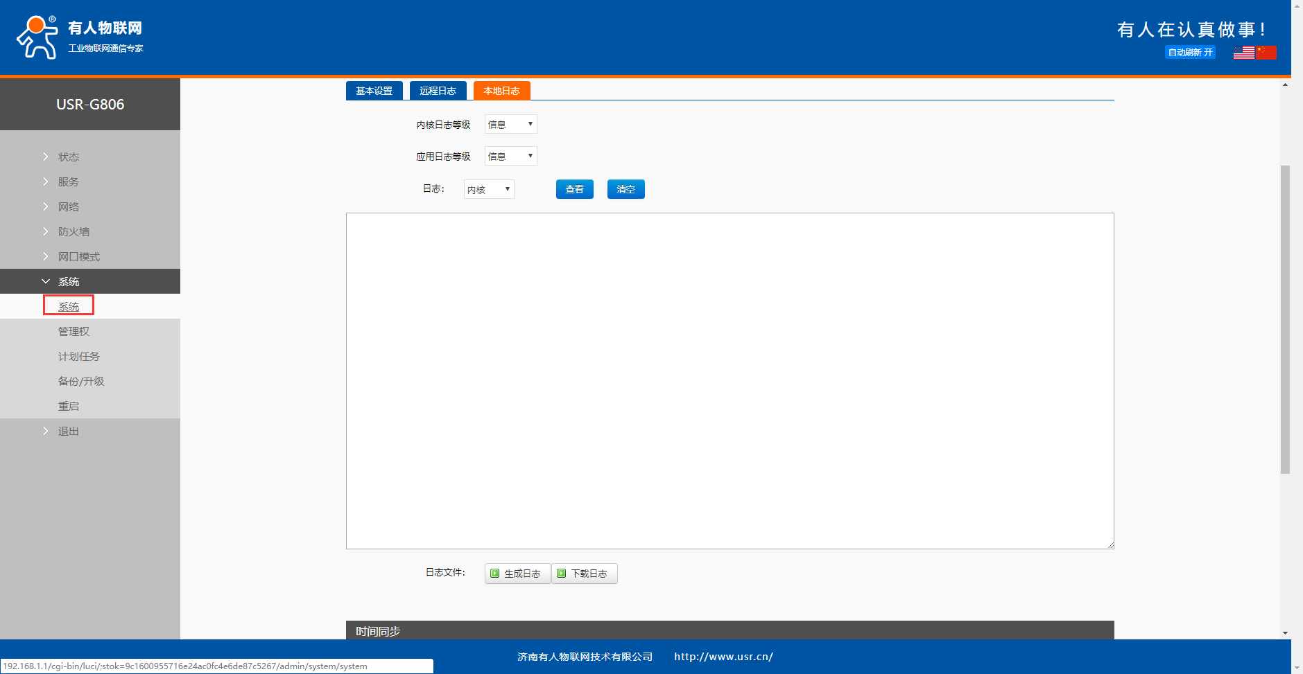 日志(內(nèi)核、應(yīng)用、VPN)支持即時(shí)查看、清空;如下圖: