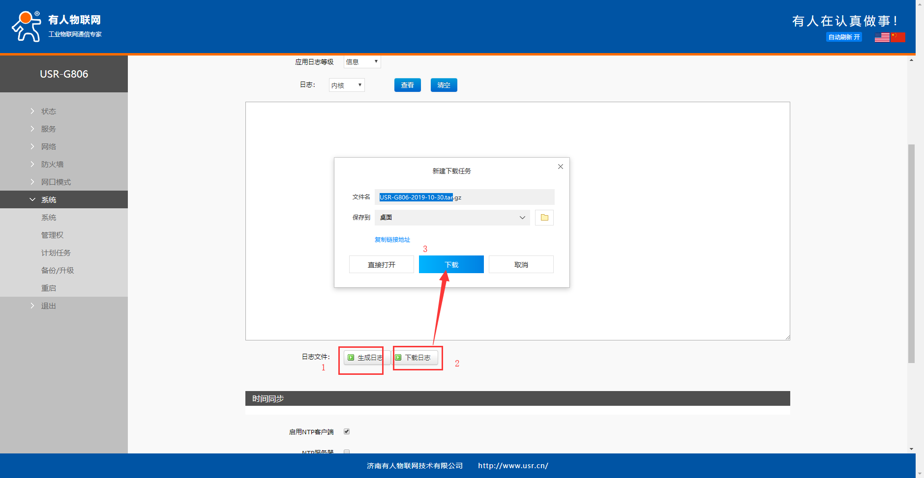 支持日志文件導(dǎo)出(先生成后導(dǎo)出),(不要修改日志等級(jí)),先點(diǎn)擊生成日志,后點(diǎn)擊下載日志。之后會(huì)生成一個(gè)壓縮包,即日志文檔。