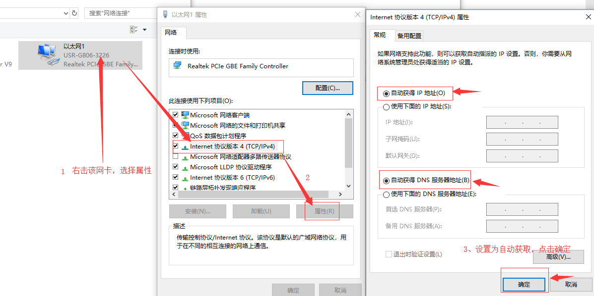 1)電腦配置網(wǎng)卡,選擇自動獲取IP地址