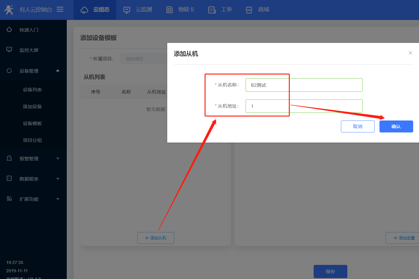5、本次案例是A2/B2連有人云進行數(shù)據(jù)顯示,可以進入云組態(tài),選擇添加設(shè)備;