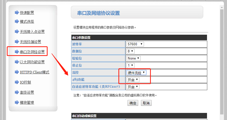注:若是B2連接485串口線,使用485串口線時, 需要現(xiàn)將模塊的打開485功能,可在內(nèi)置網(wǎng)頁或AT指令配置AT+FUDLX開啟485功能,該命令使能或禁止 485 控制功能,默認 RS485 是關(guān)閉的,485 控制引腳為 RTS。該命令設(shè)置后恢復(fù)出廠設(shè) 置生效。 AT+UART配置硬件流控,重啟生效,指令詳情可看產(chǎn)品軟件設(shè)計手冊AT指令詳情部分。