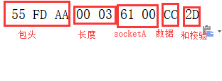 串口端輸入數(shù)據(jù):55 FD AA 00 03 61 00 CC 2D