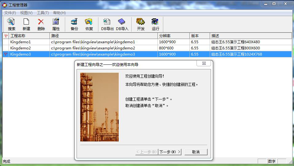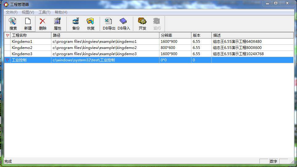 組態(tài)軟件編程部分。新建一個(gè)工程,然后點(diǎn)擊開發(fā)。