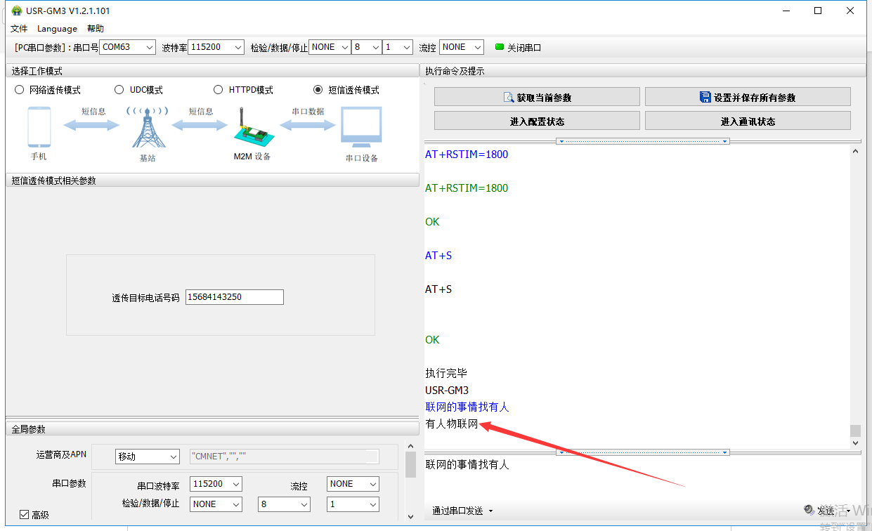 1. 短信透傳只適用與移動聯(lián)通的普通sim卡使用,物聯(lián)卡無法使用該功能。