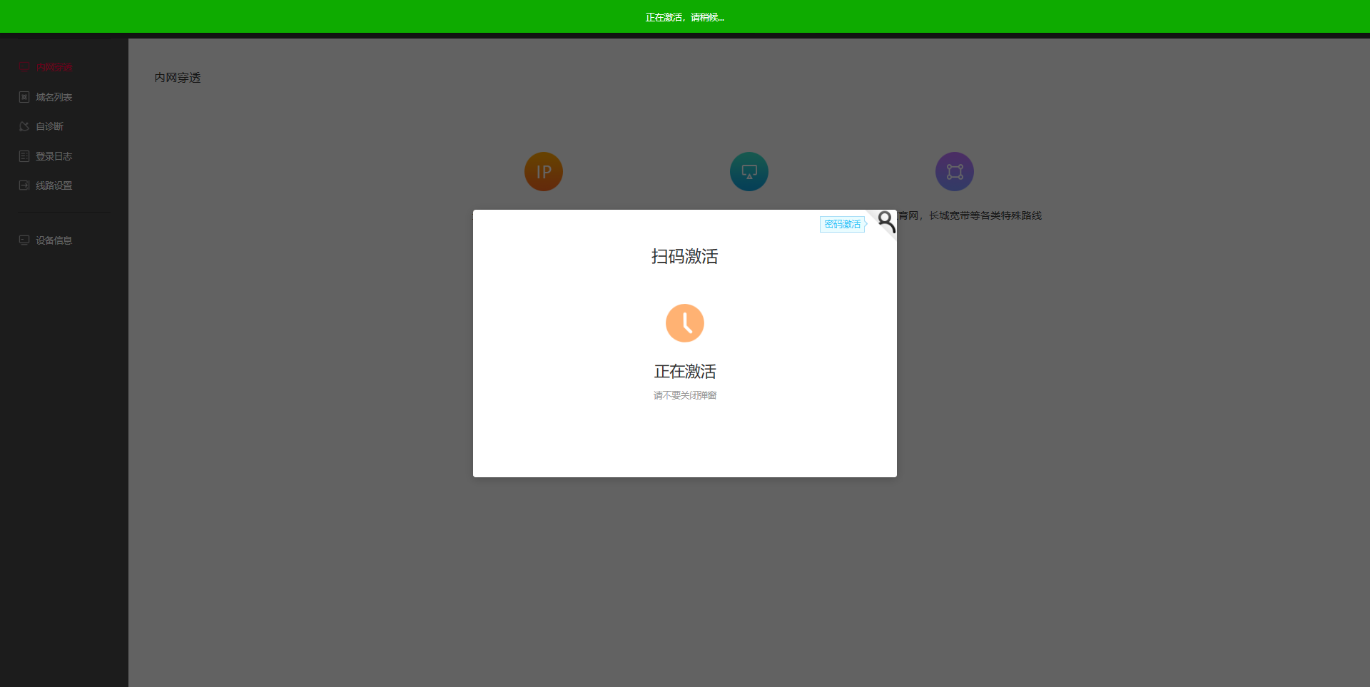 3、進入頁面后顯示掃碼激活??梢杂檬謾C花生殼APP掃描二維碼激活或者點擊右上角,切換激活方式。