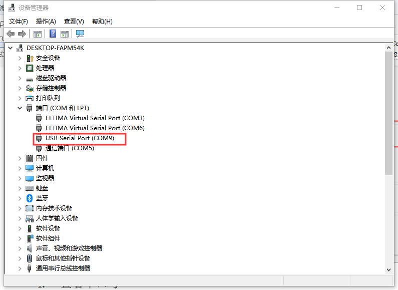 在設(shè)備管理器中查看端口信息,確定302串口使用的串口號(hào),如下圖所示電腦端口號(hào)為COM9