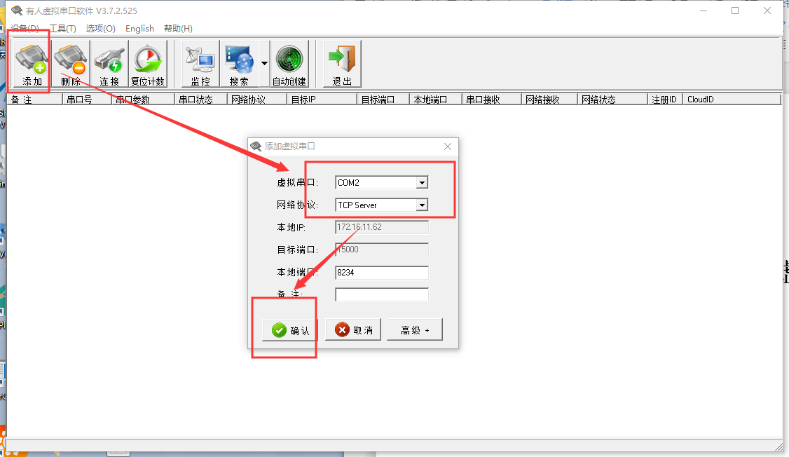 3.創(chuàng)建虛擬串口,網(wǎng)絡(luò)協(xié)議選擇TCP Server,本地端口設(shè)為8234(可隨意設(shè)置,只要你設(shè)置的端口不是特殊端口或者重復(fù)的端口)