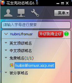 下載花生殼軟件,申請(qǐng)一個(gè)動(dòng)態(tài)域名,如下動(dòng)態(tài)域名名為:huibinlifromusr.xicp.net