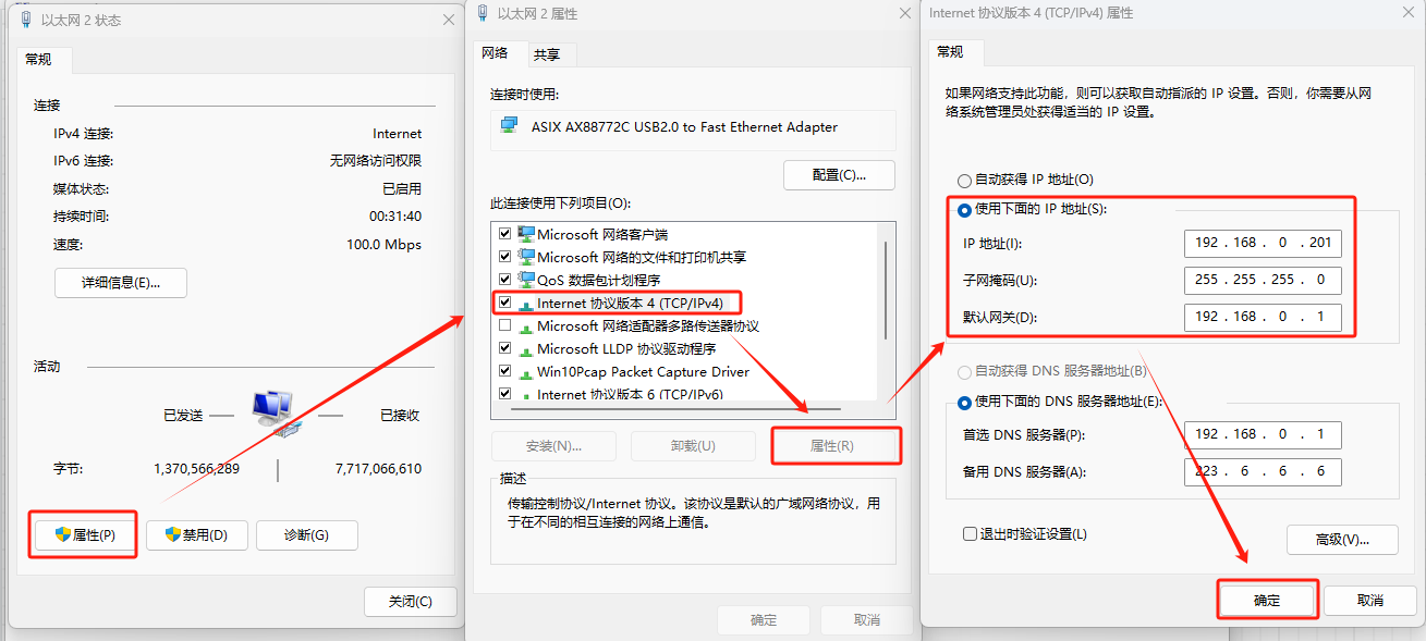 USR-N540-H7出廠默認(rèn)靜態(tài)IP192.168.0.7,電腦需要設(shè)置同網(wǎng)段,將電腦IP設(shè)置為192.168.0.201,禁用其他網(wǎng)卡