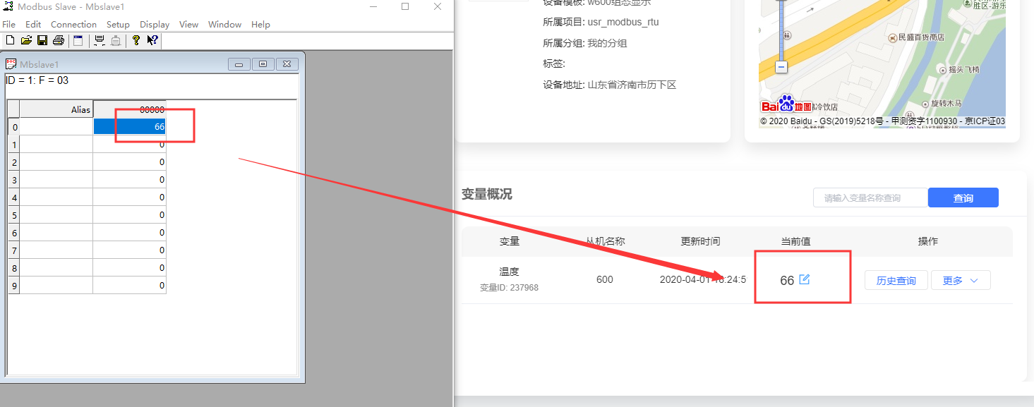 12、在modbus slave串口軟件發(fā)送數(shù)值,可以在有人云上進(jìn)行數(shù)據(jù)的顯示,其中ID1是從機(jī)號(hào),03是功能碼