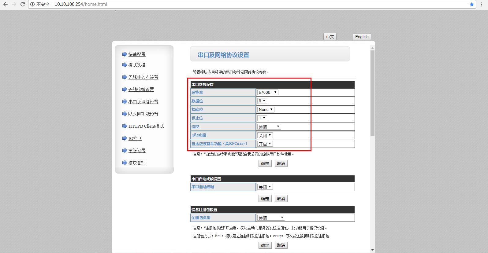 USR-WIFI232-B2默認(rèn)串口參數(shù)是57600,NONE,8,1