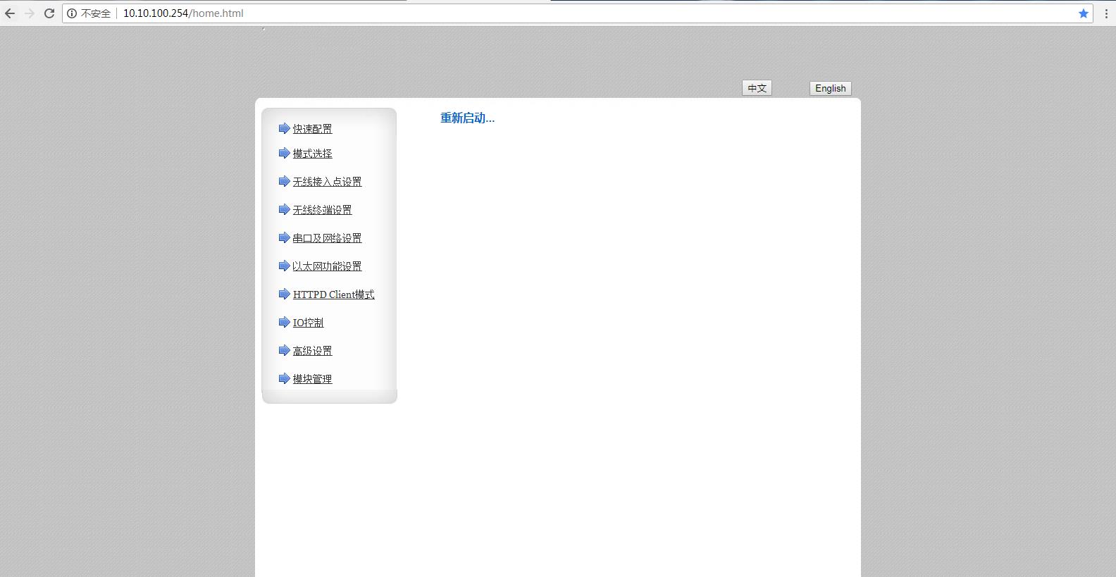 網(wǎng)頁(yè)設(shè)置完參數(shù),重啟模塊。
