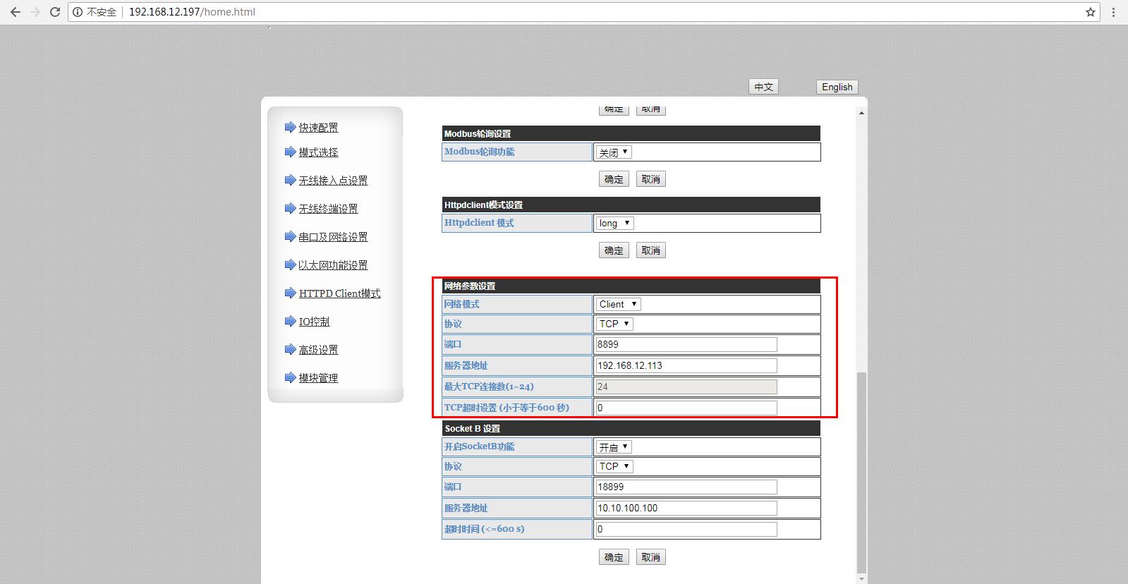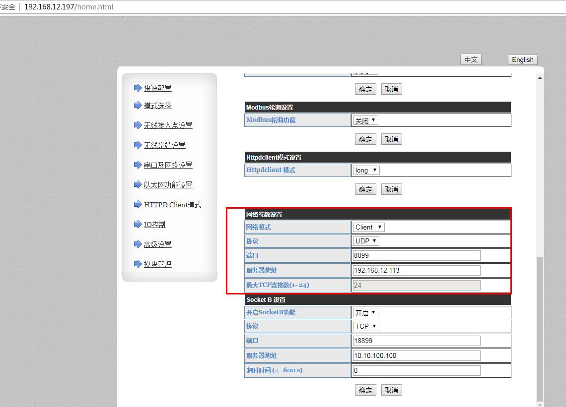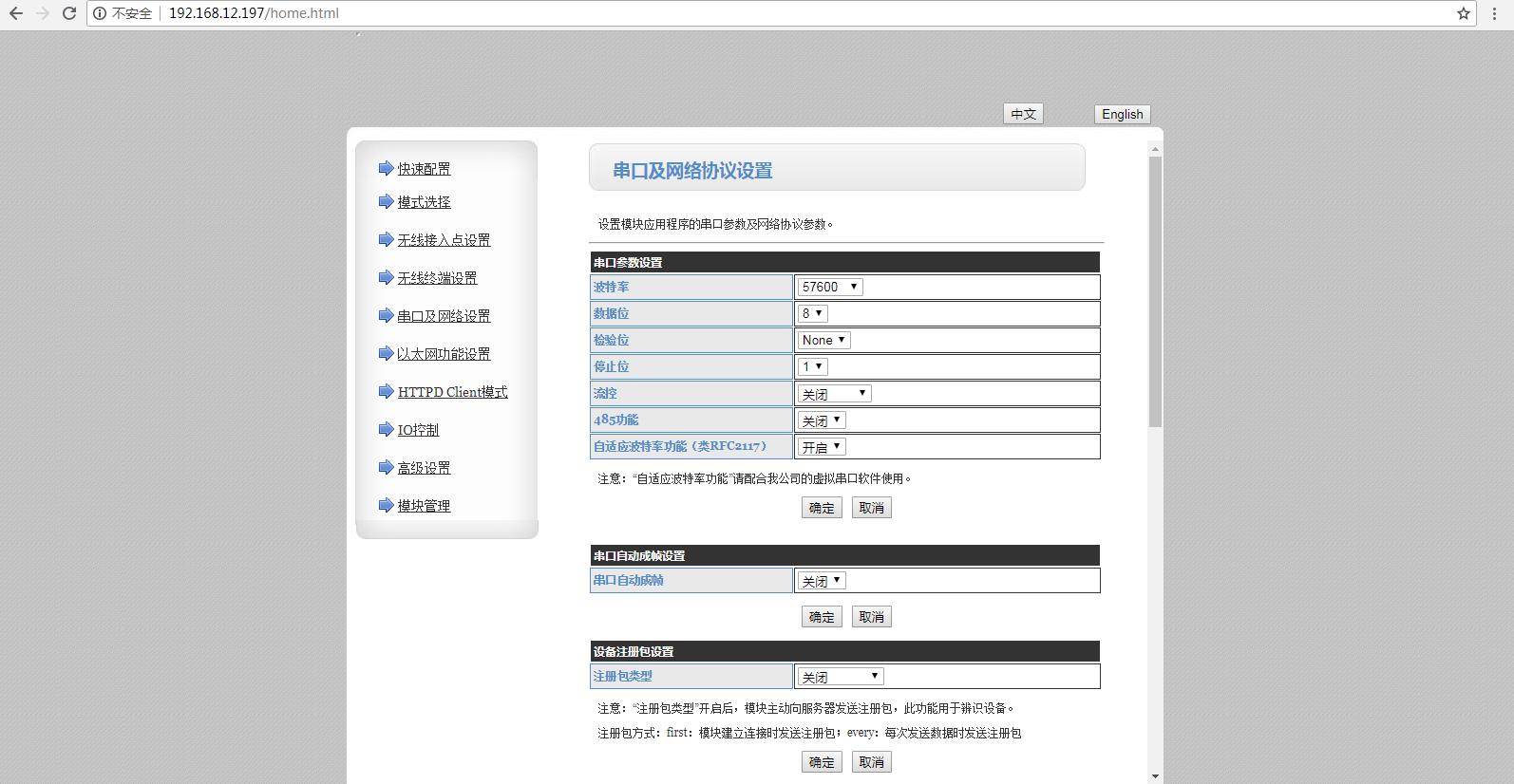 用USR-WIFI232-B2的Ip 登錄USR-WIFI232-B2的網(wǎng)頁,然后修改B2的串口參數(shù)。測(cè)試4種工作模式下,串口和網(wǎng)絡(luò)的數(shù)據(jù)透?jìng)鳌?/p>