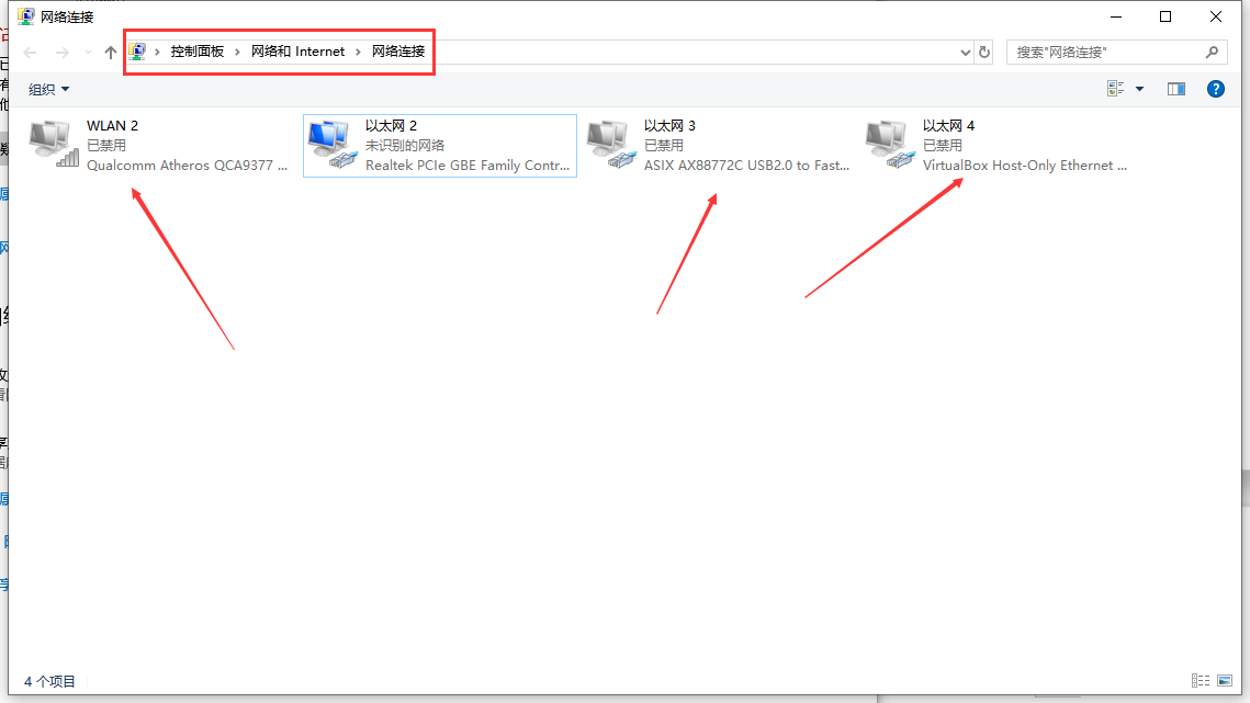 2、按路徑:控制面板-->網(wǎng)絡(luò)和Internet-->網(wǎng)絡(luò)和共享中心找到“windows防火墻”和“更改適配器設(shè)置”選項(xiàng),關(guān)閉防火墻并禁用與本次測試無關(guān)的網(wǎng)卡。并關(guān)閉電腦殺毒軟件。