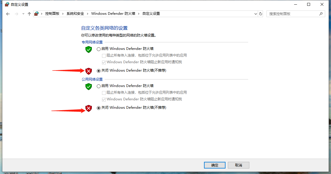 2.按路徑:控制面板--網(wǎng)絡(luò)和Internet--網(wǎng)絡(luò)和共享中心找到“windows防火墻”和“更改適配器設(shè)置”選項(xiàng),關(guān)閉防火墻并禁用與本次測試無關(guān)的網(wǎng)卡。并關(guān)閉電腦殺毒軟件。