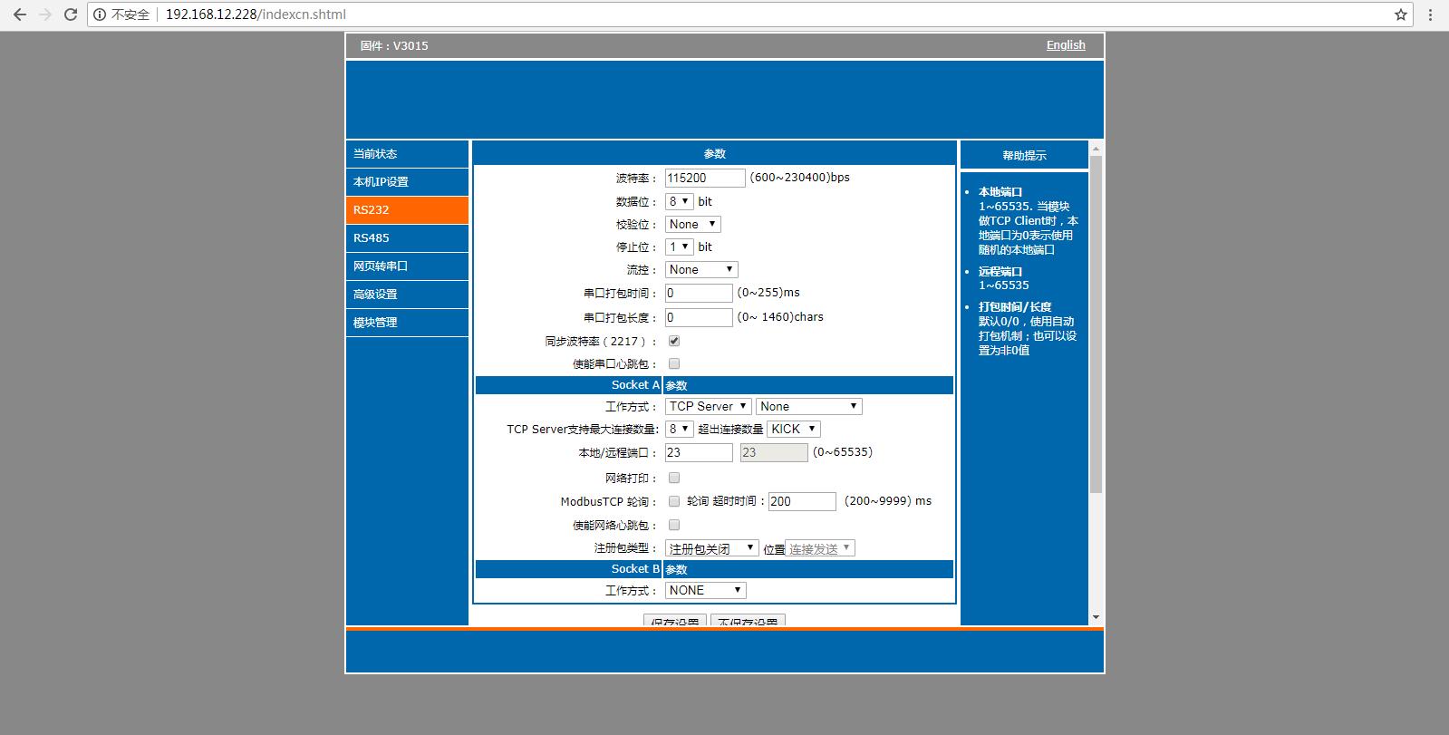 在瀏覽器輸入410S的Ip,可以登錄410S的內(nèi)置網(wǎng)頁(yè)。工作方式TCp server 本地端口23