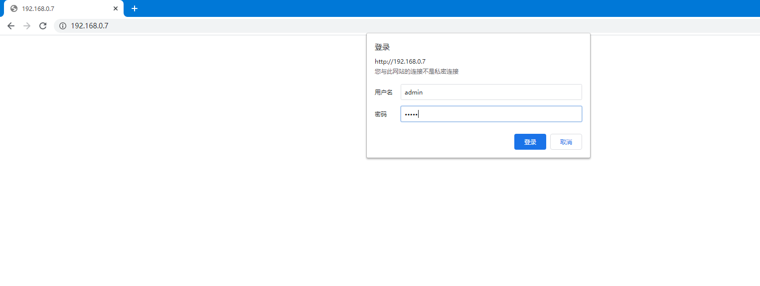 4、打開瀏覽器,進(jìn)入668的內(nèi)置網(wǎng)頁,默認(rèn)IP為:192.168.0.7,用戶名和密碼均為admin。