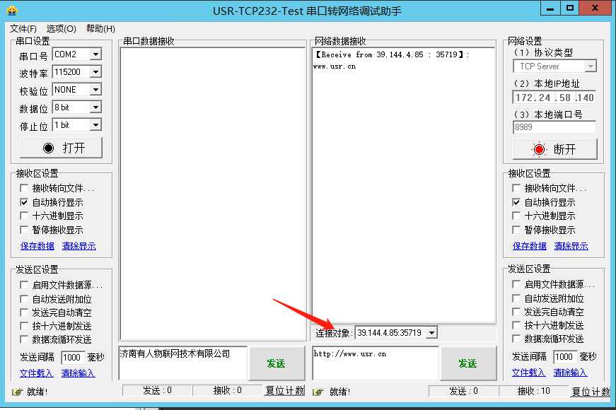 (2)測試說明:本測試連接的是我司的遠(yuǎn)程服務(wù)器,實現(xiàn)的功能是在服務(wù)器端查詢或更改模塊的參數(shù)