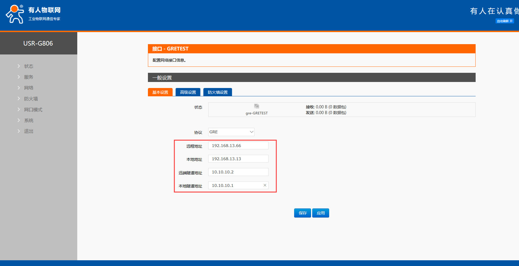 防火墻選擇WAN接口,設(shè)置完成后點(diǎn)擊保存應(yīng)用