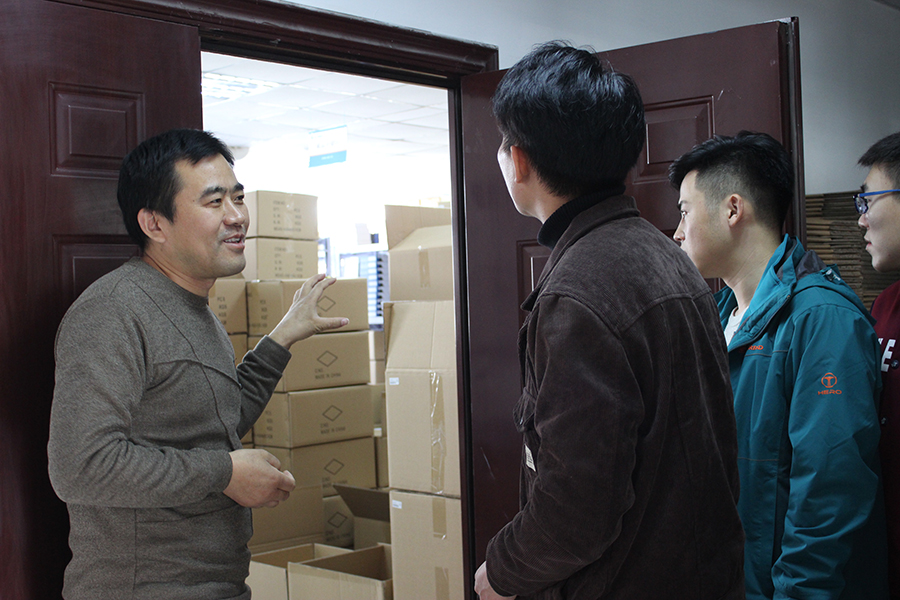 供應(yīng)鏈副總房玉軍(左一)帶領(lǐng)大家參觀供應(yīng)鏈基地