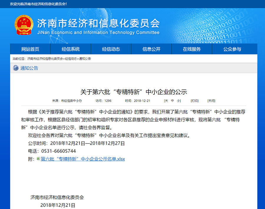 12月21日,有人物聯(lián)網(wǎng)榮獲由濟南市經(jīng)濟和信息化委員會評選的“第六批專精特新中小企業(yè)”稱號。