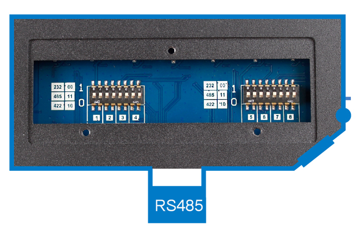 為了減小體積,方便機柜中擺放,節(jié)省設(shè)備接口空間,做成RJ45封裝形式,使用時通過DB9-M 轉(zhuǎn) RJ45轉(zhuǎn)換器即可實現(xiàn)輕松聯(lián)網(wǎng)。由于RS232模式使用相對較多,因此出廠默認(rèn)為RS232模式。如果使用RS485模式或RS422模式可調(diào)整對應(yīng)的撥碼開關(guān)。