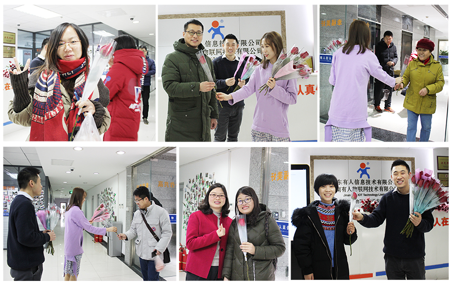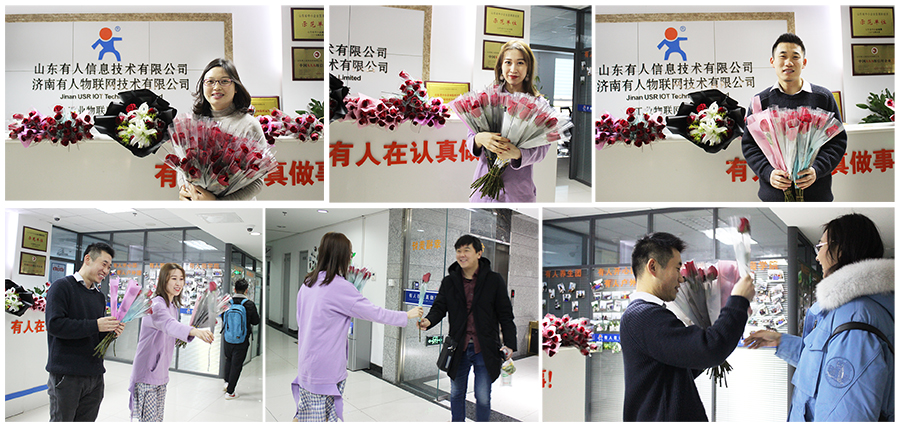 公司總部人力資源部同事,早早地來到公司,為每一名小伙伴派發(fā)節(jié)日玫瑰。無論女同事還是男同事,每人都會收到一支鮮艷的紅玫瑰。