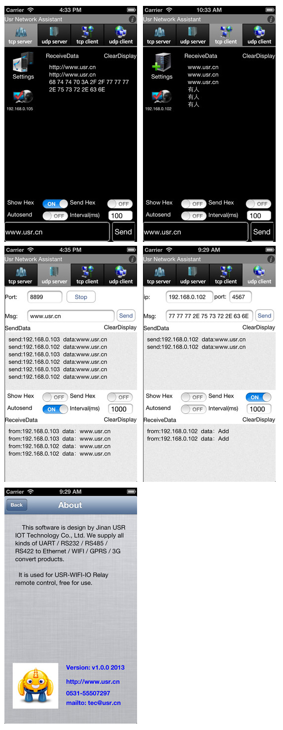 USR-SocketTools適用于任何一款網(wǎng)絡(luò)設(shè)備,支持TCP Client、TCP Server、UDP,通過蘋果手機即可實現(xiàn)向指定IP、端口發(fā)送數(shù)據(jù),方便調(diào)試。