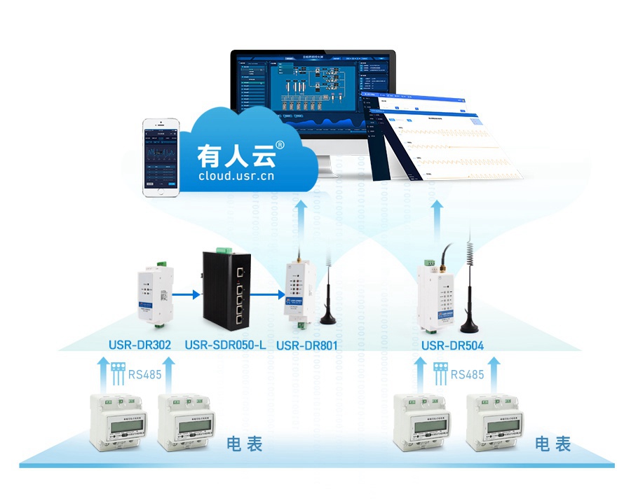 實(shí)現(xiàn)功能:電能表數(shù)據(jù)的遠(yuǎn)程采集和聯(lián)網(wǎng)傳輸,配合有人云實(shí)現(xiàn)對(duì)能源的云端智能管控。