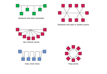 幾種類型的網(wǎng)絡(luò)拓?fù)涠际强赡艿?,但是菊花鏈總線配置是最有效的。通常,單元之一是控制網(wǎng)絡(luò)流量的主機(jī),并防止多個(gè)驅(qū)動(dòng)程序同時(shí)處于活動(dòng)狀態(tài)(總線爭(zhēng)用)。屏蔽雙絞線電纜是物理介質(zhì)。電纜阻抗應(yīng)在100-120的范圍。在采用雙頭螺栓技術(shù)的骨干網(wǎng)中,不得在設(shè)備端斷開(kāi)任何雙頭螺栓的連接。否則,這種螺柱將充當(dāng)天線,并在RS485總線上引入大量噪聲,以至于把通訊的可能變得不可能。這實(shí)際上是一個(gè)相當(dāng)普遍的問(wèn)題根源。 電纜越長(zhǎng),數(shù)據(jù)速率越低: