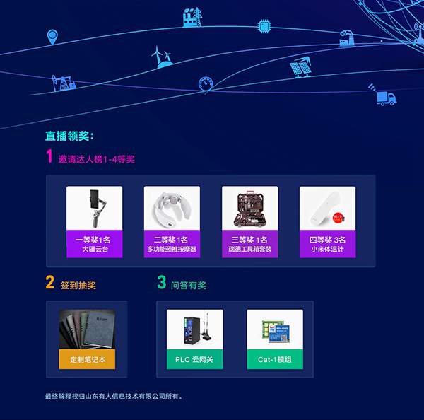 除在現(xiàn)場進(jìn)行常規(guī)展示外,有人物聯(lián)網(wǎng)還將開放線上直播間,為異地客戶提供“云參展”服務(wù)。屆時(shí),我們將邀請重磅嘉賓帶來“有人物聯(lián)網(wǎng)新技術(shù)分享”,為大家提供“智能硬件上云服務(wù)”、“智能方案展示”、“5G/Cat-1/NB-IoT新產(chǎn)品介紹”等直播干貨,期間好禮不斷,歡迎大家參加。