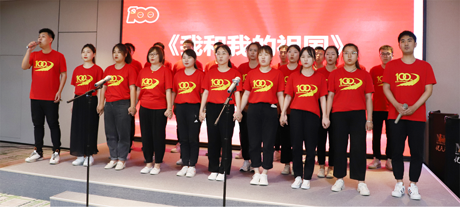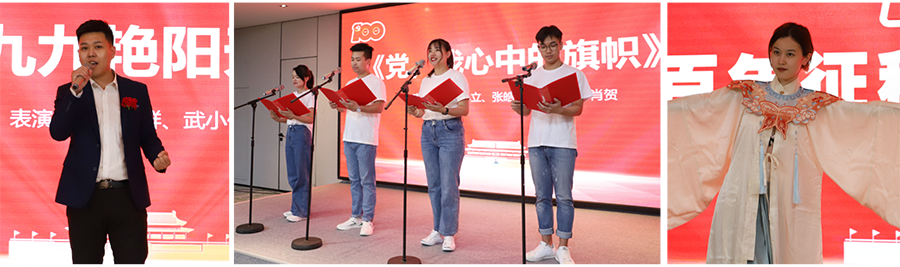 活動(dòng)期間還進(jìn)行了《黨,我心中的旗幟》朗誦等文藝表演?;顒?dòng)最后,在場(chǎng)全體人員滿懷對(duì)黨和祖國的真摯情感,齊聲唱響《我和我的祖國》,鏗鏘有力的聲音傳達(dá)出了身為共產(chǎn)黨員的自豪感和使命感,唱出了愛黨、愛國、奮進(jìn)的時(shí)代情懷。