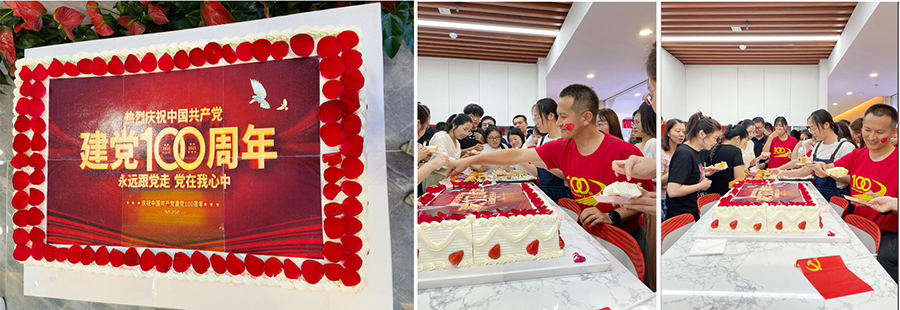 公司精心準(zhǔn)備建黨100周年紀(jì)念蛋糕,全體員工共同祝福我們偉大的中國共產(chǎn)黨生日快樂,祝福我們偉大的祖國更加繁榮昌盛!