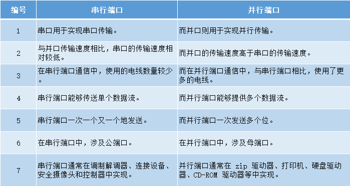 串口是用于連接串口線以實(shí)現(xiàn)串口通信的接口。這些端口可以對(duì)接一個(gè)連接傳輸線的9針D形連接器,稱(chēng)為DB-9連接器。通過(guò)單線獲得的串行通信,只有單一的數(shù)據(jù)流從一端傳輸?shù)搅硪欢?。因此,與并行傳輸一樣,在串行傳輸中數(shù)據(jù)速度不匹配不是問(wèn)題。電線的長(zhǎng)度可以根據(jù)需要增加。