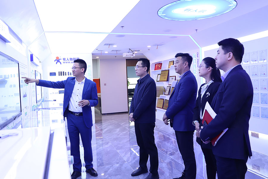 眾領(lǐng)導(dǎo)在董事長古欣的陪同下參觀了企業(yè)展廳,聽取了關(guān)于有人物聯(lián)網(wǎng)企業(yè)發(fā)展情況的介紹,并了解了有人物聯(lián)網(wǎng)多項(xiàng)創(chuàng)新產(chǎn)品研發(fā)成果。