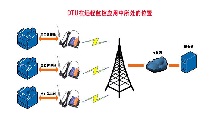 DTU是數(shù)據(jù)終端設(shè)備(Data Terminal unit)的簡寫。廣義地講,在進行通信時,傳輸數(shù)據(jù)的鏈路兩端負責(zé)發(fā)送數(shù)據(jù)信息的模塊單元都稱之為DTU,在它的作用下對所傳信息進行格式轉(zhuǎn)換和數(shù)據(jù)整理校驗。狹義地講,DTU一般特指可以把傳感器/流量計/PLC/單片機等串口(RS232/RS485/TTL)設(shè)備采集的數(shù)據(jù),通過GSM/GPRS網(wǎng)絡(luò)(就是手機網(wǎng)絡(luò))將數(shù)據(jù)發(fā)送到指定的服務(wù)器(就是數(shù)據(jù)采集平臺/數(shù)據(jù)監(jiān)控平臺等),服務(wù)器接收到數(shù)據(jù)可以進行分析、處理、顯示、保存等操作,同時也可以通過DTU發(fā)送一些信息給遠端的串口設(shè)備,去執(zhí)行一些動作。
