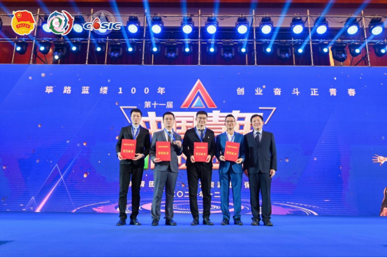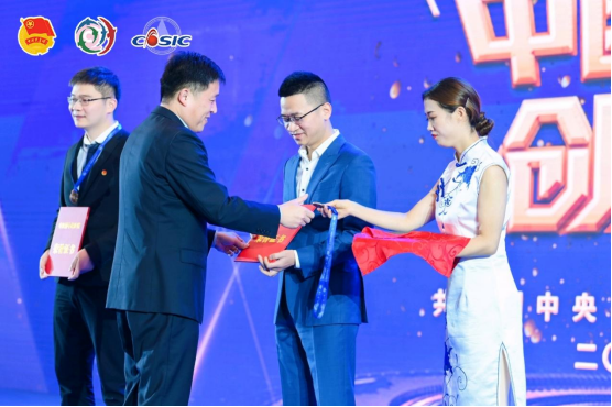 中國(guó)航天科工集團(tuán)黨群部副部長(zhǎng)、團(tuán)委書記齊先國(guó)為古欣頒獎(jiǎng)
