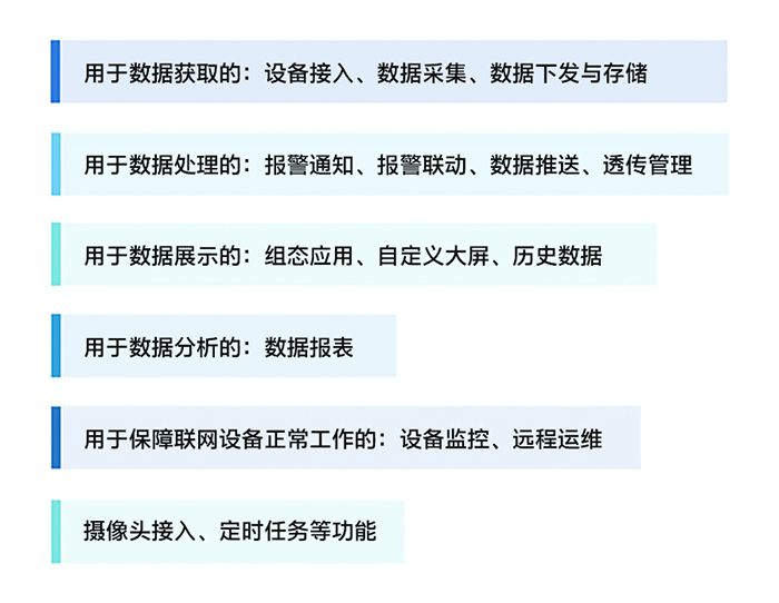 其中,有人云企業(yè)版著重突出用戶的專屬體驗,提供物聯(lián)網(wǎng)平臺+企業(yè)專屬配置+更多的資源+更好的服務(wù)+更強大的二次開發(fā),助力用戶打造更滿足自己需求的物聯(lián)網(wǎng)平臺。首先,給大家介紹下有人云基礎(chǔ)版的功能主要有: