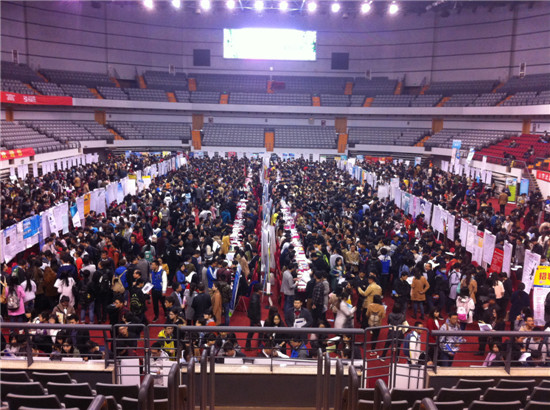 2016年3月26日,山東省濟南市,山東大學中心校區(qū)體育館內(nèi)舉行畢業(yè)生招聘會,673家用人單位提供萬余個就業(yè)崗位,吸引了1萬多名畢業(yè)生前來尋找工作。