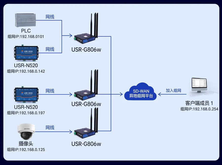 支持IP通信的終端(PLC、攝像頭、工控板等)均可無縫接入,打破地域限制,使用異地組網(wǎng)實現(xiàn)絲滑遠程訪問。