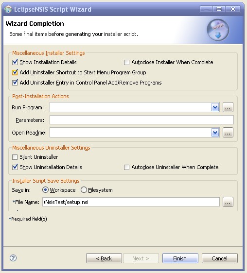 NSIS + EclipseNSIS。開源軟件,非常好用,感覺比VS2008自帶的要好用很多。第一,NSIS是腳本驅(qū)動的,很有柔性。第二,EclipseNSIS提供了圖形化制作界面,對于通用的安裝程序的制作,非常簡單。