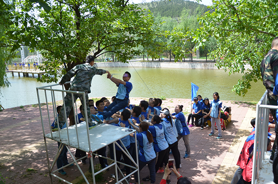 除了隊員本身,沒有任何防護措施,戴上眼罩的一瞬間,每個隊的小伙伴都將自己全身心的交給這個團隊!下落時巨大的沖擊力一次一次的考驗著站臺下面的隊員,紅腫的胳膊是團結的印記!這是一項心理素質(zhì)的博弈,不僅可以鍛煉團隊成員之間的信任,還可以突破自我,克服恐懼。