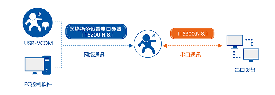 支持網(wǎng)絡發(fā)送有人同步波特率協(xié)議,動態(tài)改變串口波特率、數(shù)據(jù)位、校驗位、停止位。