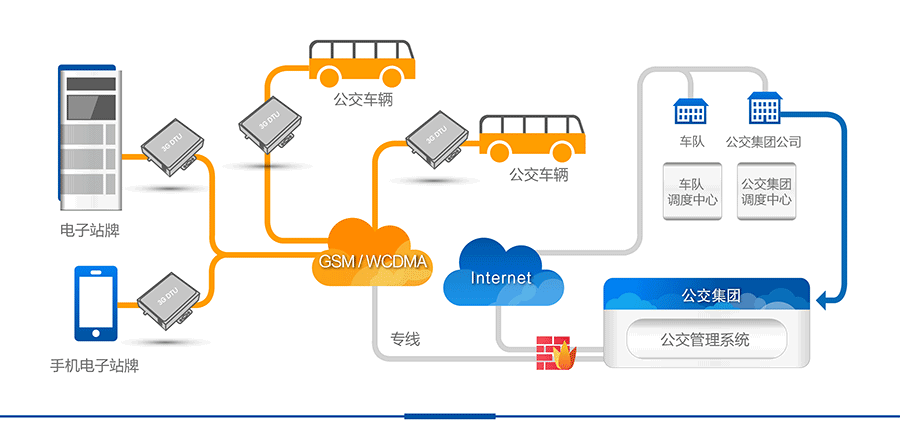 公交集團采購大量3G DTU應用到公交汽車中,將公交汽車的各類信息(包括位置信息、IC卡數(shù)據(jù)等) 實時發(fā)送到各類平臺上,方便用戶乘車,實現(xiàn)智慧城市。