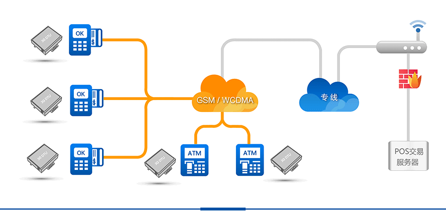 在零售行業(yè)中,無線POS機和ATM機使用3G DTU實現(xiàn)遠程聯(lián)網(wǎng),實現(xiàn)安全支付,簡單便利。